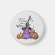 This magical and mystical design features a cute purple cat wearing a witch cat and jack-o-lanterns with the phrase "Life Is Better With A Witch".
