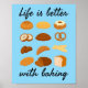 This funny food design features the words Life Is Better When I'm Baking on it. You can create with different flavours, desserts like cakes, and always find new recipes to try. The best part is enjoying the delicious results of your hard work!