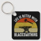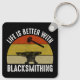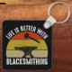 Life Is Better With Blacksmithing. This vintage funny quote accessory is a great blacksmith gift for anyone who's a blacksmith & loves forging & metalworking. If you like to forge in fire in your garage or shed, and you're a blacksmith, metalworker, farrier or knifemaker, & love working with forged metal, then this design is for you! Features a distressed graphic of a hammer and anvil.
