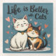 This adorable cute cat illustration features two happy feline friends sitting close together, radiating warmth and companionship. Surrounded by floating hearts, this aesthetic cat design perfectly captures the joy of being a cat lover. The soft, hand-drawn style paired with the phrase "Life is Better with Cats" makes it a heartwarming piece for anyone who adores their furry companions. With its kawaii cat art aesthetic, this design blends a charming, cottagecore animal art vibe with a touch of minimalism, making it ideal for those who appreciate cosy and whimsical details. The adorable cat couple, one a fluffy white kitty and the other a sweet calico, exudes happiness, making this design a delightful celebration of feline friendship. Whether you're drawn to cosy feline lovers themes or simply enjoy happy cat aesthetic art, this piece is a perfect expression of your love for cats and their comforting presence in everyday life. AI generated artwork.