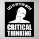 Life Is Better With Critical Thinking. This funny quote accessory is a great gift for a critical thinker, science lover, sceptic, freethinker, atheist, agnostic or just someone who's not afraid to ask questions. If you're a sceptical person with a questioning mind, are a free-thinker, and you don't believe everything you're told, this design is for you!