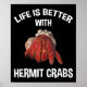 Life Is Better With Hermit Crabs. Cute & funny hermit crab lover gift idea for anyone who loves pet hermit crabs. If you're a hermit crab owner & love watching hermies change shells in their tank, this funny design is for you! Perfect accessory for a hermie lover & owner, and anyone who's hobby is keeping hermit crabs in a terrarium or hermit crab tank, or watching them on a tropical beach.