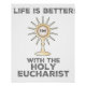 "Life is Better with the Holy Eucharist" is a simple way to express your love for Jesus in the Holy Eucharist, and spending time in Eucharistic Adoration. Design features the Host (with the 'IHS' monogram) contained in a monstrance. Great gift for the faithful Catholic, and promoting belief in the Real Presence of Jesus in the Blessed Sacrament. Also makes a nice gift from sponsor to R.C.I.A. candidate.