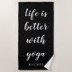 Life is better with yoga custom beach towel gift.  Elegant typography design for yoga enthusiast, class trainer, sports coach or gym instructor. Fun personalised towel for him or her. Add your own name, funny quote or monogrammed initials. Great for beach, pool, yoga , exercise, pilates and more. Personalised Birthday gift ideas for sporty men and women. Perfect for yoga instructor, teacher, student, friends, family etc. Large size with big text. Change into any colour.