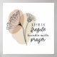 Poster depicts a simple floral line art design with two flowers on earth tone shapes. It features encouraging inspirational quote, "Life is fragile handle with prayer."