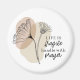 Inspirational quote magnet depicts a simple floral line art design with two flowers on earth tone shapes. It features an encouraging message, "Life is fragile handle with prayer."_