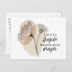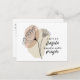 Inspirational quote postcard depicts a simple floral line art design with two flowers on earth tones background. It features an encouraging message, "Life is fragile handle with prayer."