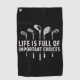 The golf towel exceeded my expectations! My husband actually approved of it! He liked the picture quality, thickness and overall usefulness of the golf towel I ordered to commemorate his lowest ever golf score. He liked it so well that I ordered 8 more towels with photos of his home golf course. Each one of the eight has the name of one of his golf group members. I will give them as party favors at my husband's 70th birthday party later this year. The different names were easy to add because the Zazzle template is so very easy to use. The colors were bright and authentic in all 9 of the towels that I made. The one of the 9 that I ordered has come out of the wash and line dry looking great.