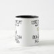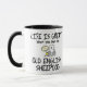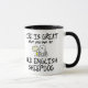 Unique Old English Sheepdog mug. Life is Great when you own an Old English Sheepdog! Super cute stick figure cartoon is hugging a grey and white sheepie in this unique drawing. Fun gift to give to your favourite dog lover.