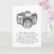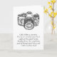 A black and white greeting card with a picture of a camera with an enlightening and motivating quote about life and how we should tune our perspective. "Life is like a camera. Focus on what’s important, capture the good times, develop from the negatives, and if things don’t turn out – take another shot." Author of quote is unknown. Design and quote is great for friends who are photographers or any friend who is in need of a pick me up in his or her life. Personalise text inside greeting card.