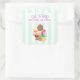 Stickers with a funny quote with an illustration of a 3 scoop ice cream sundae with colourful sprinkles. An ice cream cone with scoops of chocolate, strawberry and vanilla. A bowl of neopolitan ice cream with a cherry on top. Strawberries and a pineapple fruit sit beside the bowls. Mint green and white stripes pattern in the background.