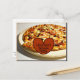Pizza pie right out of the oven and ready to eat with text, "Life is short. Eat more Pizza," postcard.
