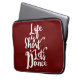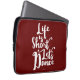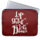 The sleeve is made of nice feeling material and seems very durable. I'm not sure how easy it'll be to clean, but the construction seems sound and the fabric is quick thick. I also like the double zipper. The printing is lovely and appears durable. The white on black contrast is nice, and the design very elegant.