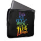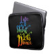 The sleeve is made of nice feeling material and seems very durable. I'm not sure how easy it'll be to clean, but the construction seems sound and the fabric is quick thick. I also like the double zipper. The printing is lovely and appears durable. The white on black contrast is nice, and the design very elegant.