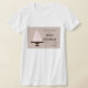 Slogan "Life is short so eat cake, lots and lots of cake with 3 tier pink frosted cake on heart background. White T-Shirt.