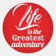 A positive calligraphy quote set against a red radial gradient background. Life is the greatest adventure is an excellent gift idea for anyone with an upbeat attitude.