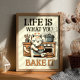 Whiskers, whiskers, and a whisk! Add a dash of cuteness and a sprinkle of humour to your kitchen with our "Life is What You Bake It" art poster, featuring an adorable baking cat ready to take on the world—one cupcake at a time. Perfect for cat lovers, baking enthusiasts, and pun fans alike, this charming poster brings cosy vibes and a smile to any kitchen, cafe corner, or home bakery.