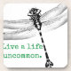 Get inspired to live your best life! Black and white dragonfly graphic with text "Live a life uncommon"