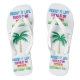 Flip-flops with a great upbeat message "life would be boring without me!" How true for many of our friends and family. A great fun flip-flop for the vacation or summer wear this season. Mum's will love these for Mother's Day or birthday and sister or girlfriend will love the fact they make people happy. Bright rainbow words and a cute palm tree. Fun beach wear flip-flops or for the whole summer.