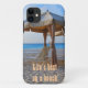 Cool cell phone case for beach bums and people who love the ocean, a great iPhone cover featuring a relaxing scene with a sand and sea view. If you'd like this design on another brand of mobile phone, feel free to send me a message through my Zazzle gallery.