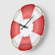 lifesaver lifebuoy nautical clock. This lifebuoy, ring buoy, lifering, lifesaver, life preserver or lifebelt, also known as a "kisby ring" or "perry buoy", clock is just right to add a nautical touch to any room or boat. Every ship's captain would love this clock in the red and white colours. Available in both small and large round designs or the square design option Add your own text to complete a one of a kind custom or personalised gift.