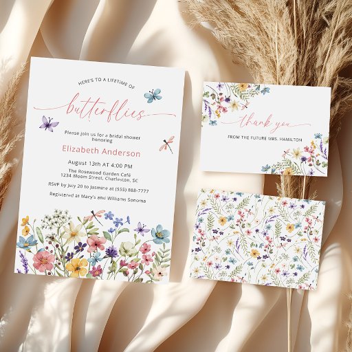 Lifetime of Butterflies Wildflowers Bridal Shower Invitation