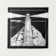 A black and white illustration of the lighthouse at the end of the boulder bank in Nelson, New Zealand. This lighthouse is at the cut near and has haulashore island in the background. The light house is lighting up the night sky, showing Nelson bays and see gulls flying.