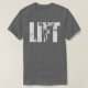 An awesome shirt with the classic strong man pose of a weightlifter raising a barbell with one arm. The weights on the ends are big balls of metal, like you’d see on old circus posters. Illustration by: ERIC FRITZ.