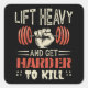 This design is a strong fist holding a barbell with the text "Lift Heavy And Get Harder To Kill" in bold stylish fonts.