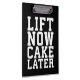 Lift Now, Cake Later - Carbs - Funny Workout Clipboard