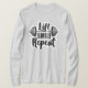 A bold and uplifting motivational design featuring the powerful phrase “Lift Smile Repeat” with a detailed barbell illustration. It embodies strength, positivity, and perseverance — the mindset of those who push their limits and find joy in every rep. The clean black design mixes inspiration with determination, creating an empowering visual statement for anyone passionate about fitness, weightlifting, or gym life.