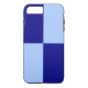 Safeguard your iPhone 8 Plus/7 Plus from shocks with an impact resistant Case-Mate Tough case featuring two light blue rectangles and two dark blue rectangles in a bold chequered pattern.