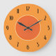 A simple wall clock with a light orange background under art deco black numbers and a darker orange face with a thin white outline. For any orange decor kitchen or room. Click Customise It to add your custom text, change background colours and more.