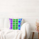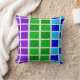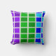 A photo of a colourful peacock’s feathers inspired this purple, blue and green squares throw pillow.