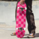 Light and Hot Pink Chequered Pattern Design Skateboard