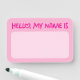 A pink design with a hot pink "HELLO MY NAME IS" whimsical heart typography design.
