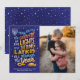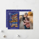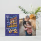 This one-photo card, features, a bright and colourful, hand-lettered Hanukkah sentiment, with latkes and lights of the menorah. The reverse side has a coordinating pattern and additional family photos can be added.