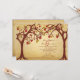 A gorgeous autumn wedding invitation featuring two barren trees with a few beautifully covered fall leaves. The colours are brown, orange, yellow, ecru and beige. In the centre of the invitation is the place to input wedding information. You can customise the card however you like.