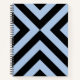 Sketch and take notes in a bold custom notebook featuring alternating light blue and black chevrons which converge in this bold geometric pattern. You can change the inside paper design to suit your needs (wide ruled, college ruled, graph, sketch, recipe, and others) in the sidebar.