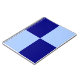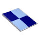 Two light blue rectangles and two dark blue rectangles form a bold chequered pattern in this clean digital design. It reminds me of cool flags, heraldry, and colours I love.