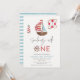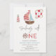 Light Blue and Red Nautical Sail Boat 1st Birthday Invitation