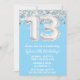 Light blue silver and white 13th Birthday invitation 13 birthday party invitation for a black white silver with modern script writing and fun foil balloons.
