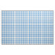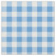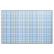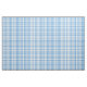 Stylish geometric fabric features a classic light blue and white gingham block pattern. Baby blue, white, and pale blue squares form a bold, checked plaid. Perfect for home decor and accessories.