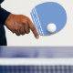 Pastel blue personalised ping pong paddle, change the text yourself when you order.