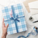 A wrapping paper designed with a light blue and white plaid pattern. Customise the white background among other options.