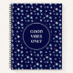 Light blue and white stars on navy blue. Good vibes text can be personalised.