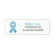 Blue Awareness Ribbon Return Mailing address Labels. Light blue health awareness ribbons stands for prostate cancer, Hydrocephalus, Klinefelter's Syndrome, Cushing Syndrome, Trisomy 18, Lymphedema, Men's Health, Graves' Disease, Hyperaldosteronism, Behcet's Disease, Shprintzen Syndrome, Spay or Neuter Pets, Scleroderma, Thyroid Disease, Velo-Cardio-Facial Syndrome.