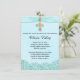 A beautiful, classy design with a cross medallion hanging from a satin ribbon. The bottom has beautiful hydrangea flowers. The background is a soft, light blue teal with an elegant damask watermark. Personalise this invite with the details of your child's baptism or christening. These invitations also work well for first communions. Please message me with any customisations you need. Art by Delightful-Doodles.