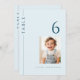 Mazel tov on this special occasion! Make your son's Bar Mitzvah party special with this minimalist typography light blue and white table numbers with a spot for photographs for the bar mitzvah boy - you can have each table have a different photo!