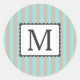 Light Blue & Beige Stripes Custom Monogram Classic Round Sticker
